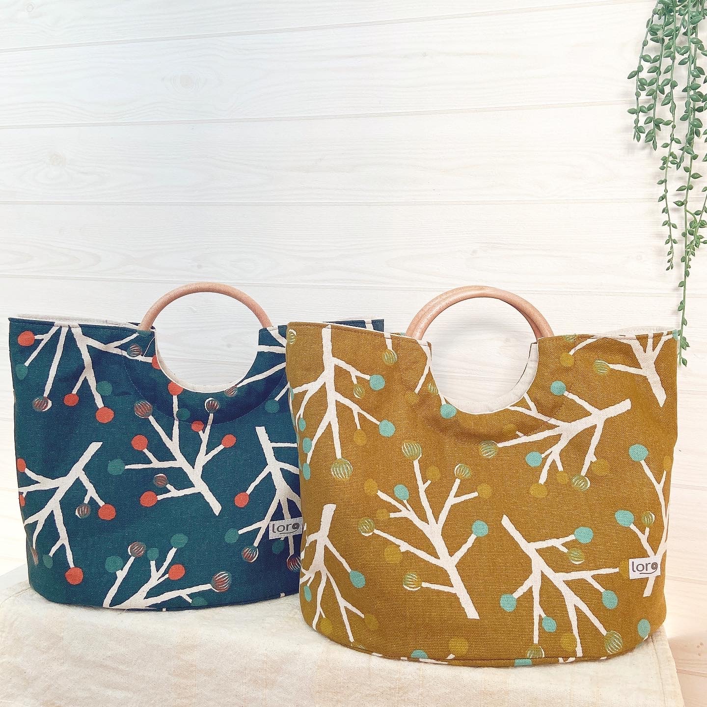 夏のイベントで完売した【丸底リングハンドルバッグ】を秋らしい生地で作りました。