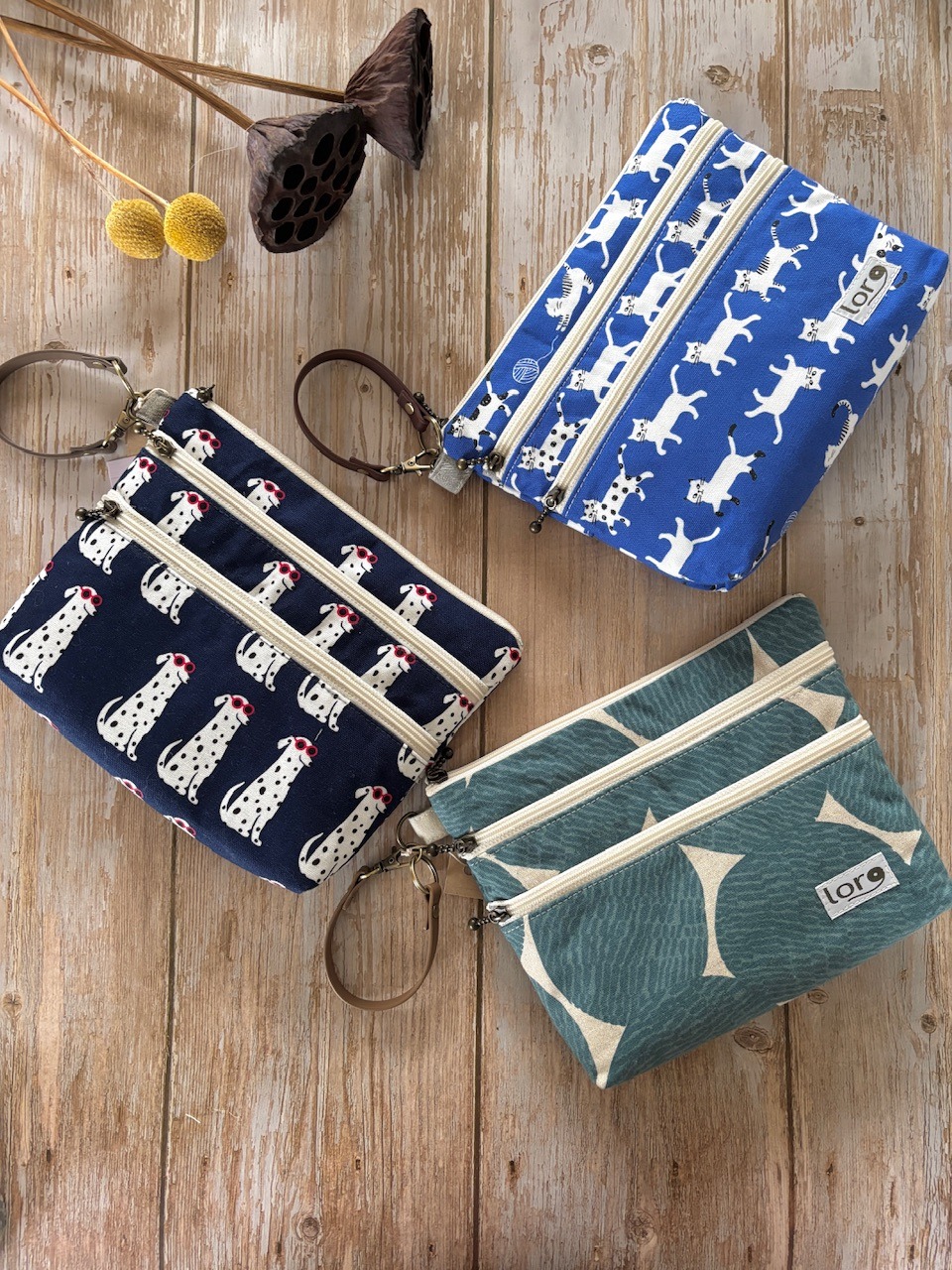 ・3本ファスナーのポーチ