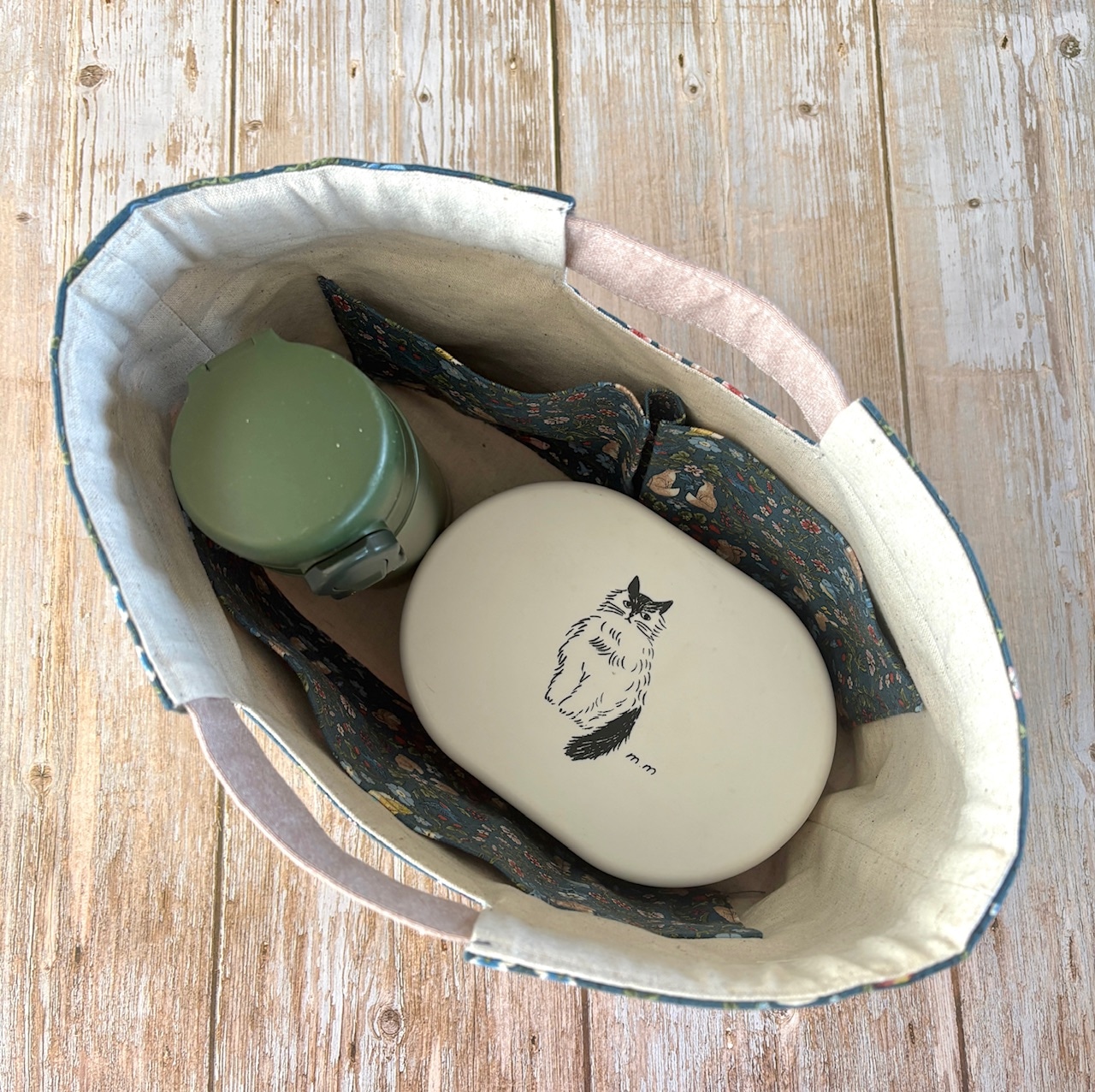 底板が入っているので、お弁当+水筒も安定して持ち運べます。