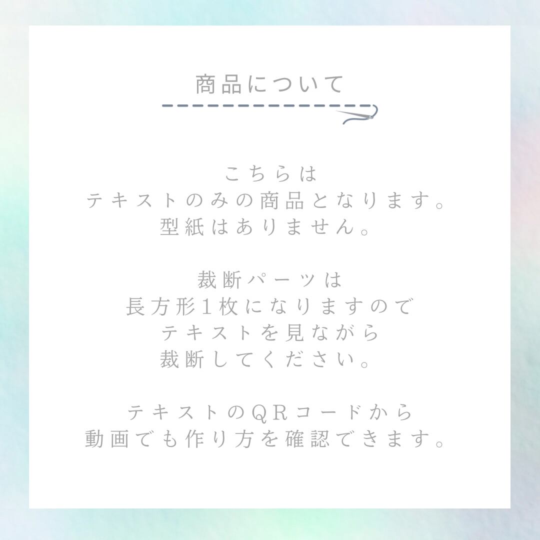 ※こちらは、テキストのみの商品になります。材料・型紙は含まれていません。裁断はテキストを見ながら行ってください。