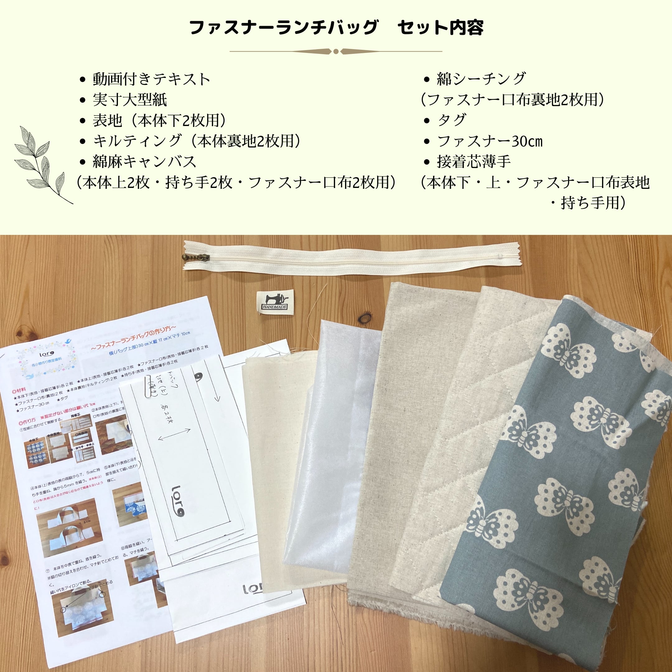ファスナーに口布がついたタイプの裏地付きファスナーバッグの手芸キットです!