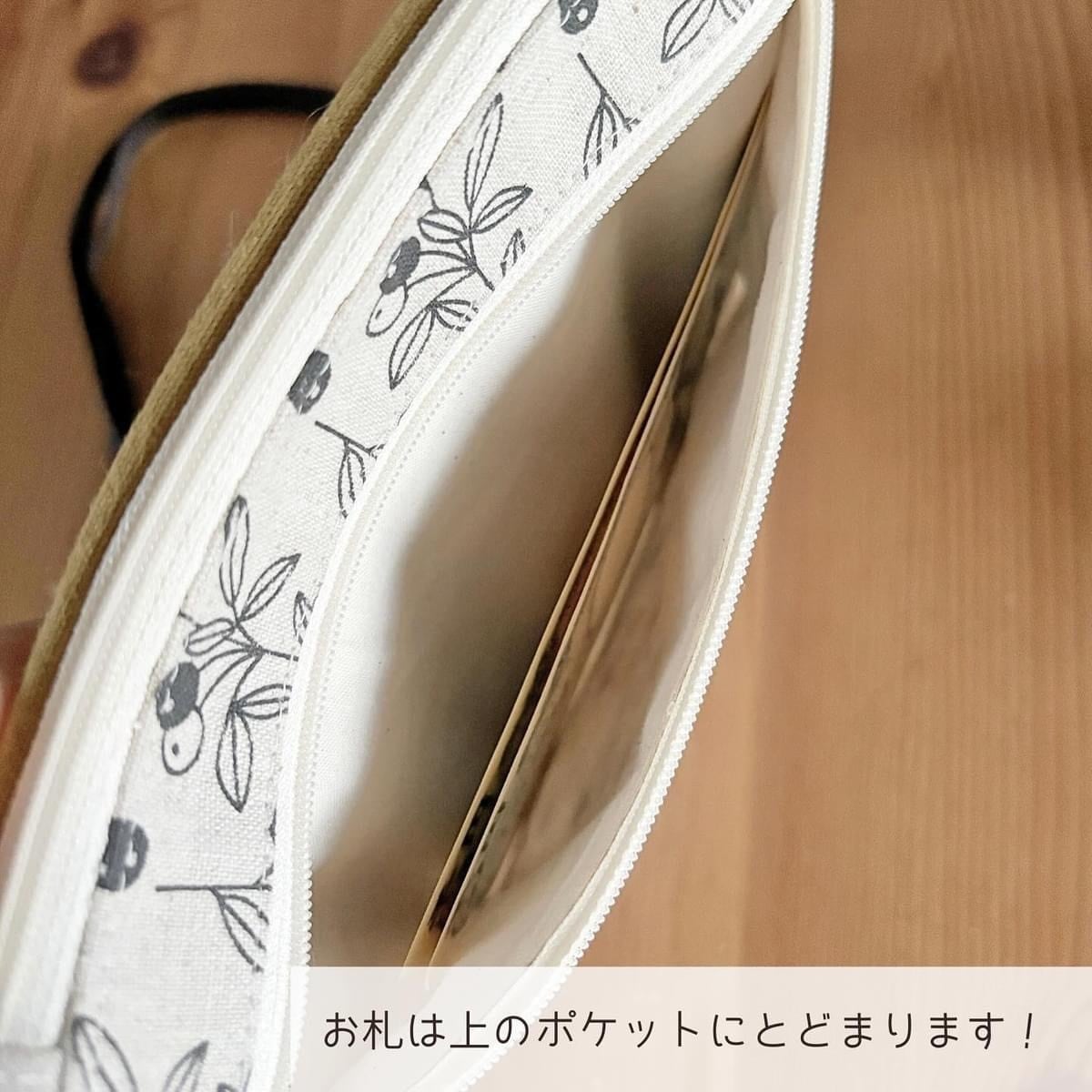 裏面のファスナーポケットにお金を入れると、小銭だけが下のポケットにスルッと落ち、自然に分かれて収納されます。